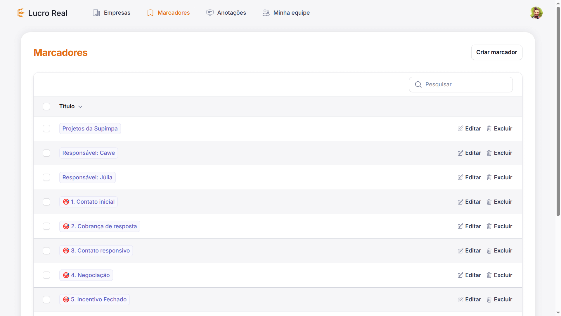 Marque as suas empresas-alvo como favoritas e organize-as com marcadores personalizados.